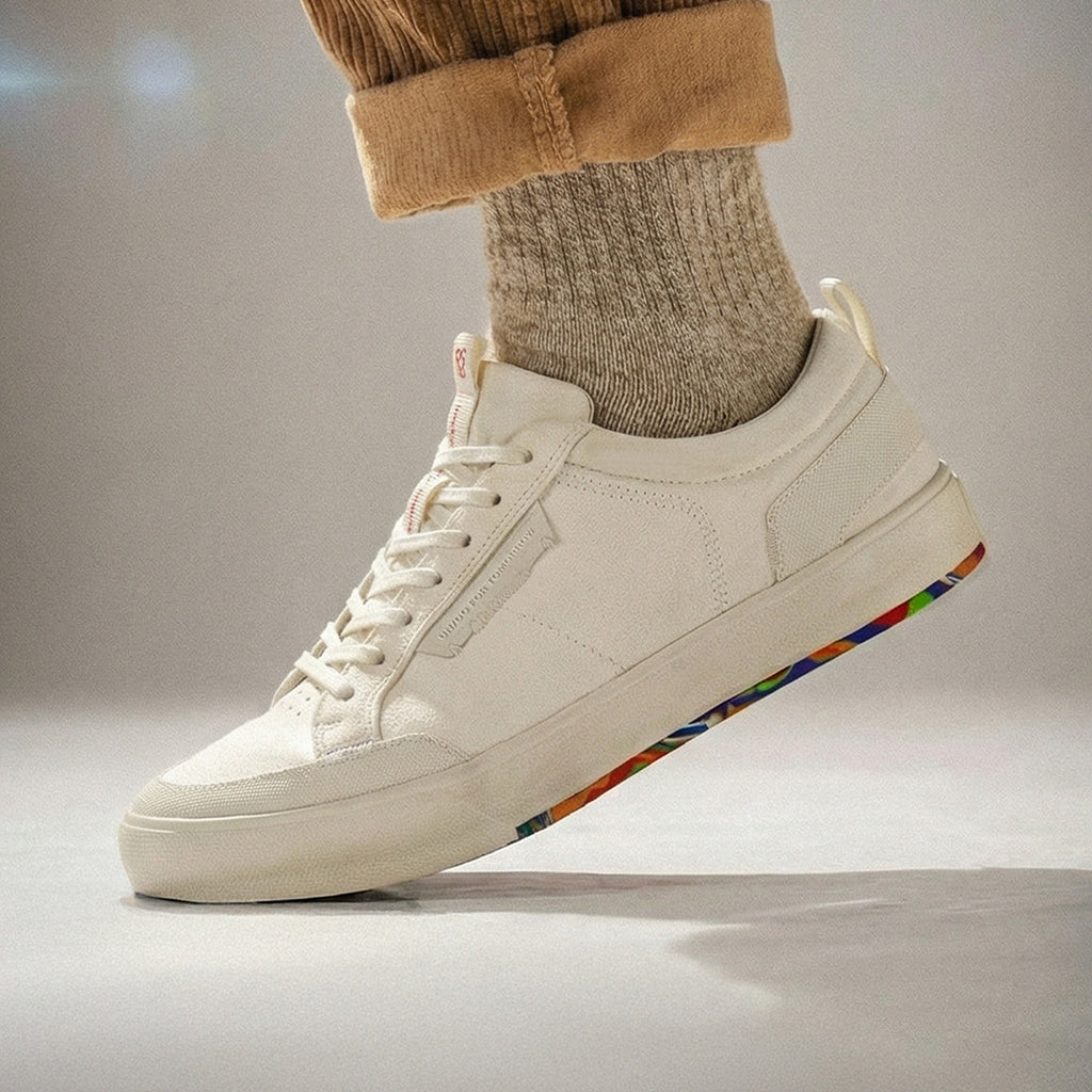 Recomendamos remover as palmilhas (se forem removíveis) e os cadarços antes da limpeza. Lave os tênis com água fria e uma quantidade mínima de sabão neutro, caso necessário. Use uma escova de dentes macia para esfregar suavemente as áreas com mais sujeira. Deixe secar à sombra, em um local bem ventilado.